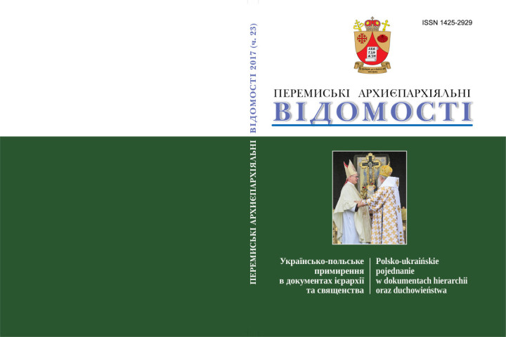Увазі читачів пропонуємо щойно опубліковане спеціальне видання річника «Перемиські Архиєпархіяльні Відомості» 2017, ч. 23, під заголовком Українсько-польське примирення в документах ієрархії та священства / Polsko-ukraińskie pojednanie w dokumentach hierarchii oraz duchowieństwa.